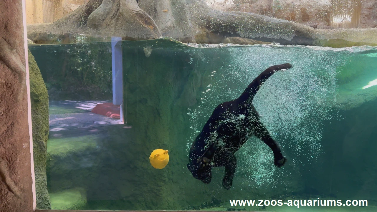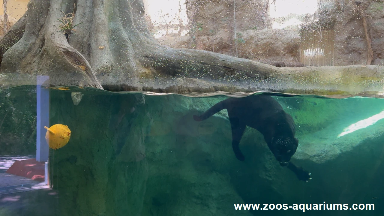 ジャガーのマヤです。初めてプールの中を泳いでいるところをみました。ボール型の遊具をおいかけて水の中に飛び込んだときの顔がかなり迫力がありました。