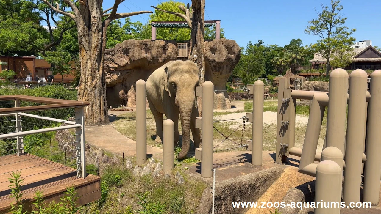本園の方へと移動します。アジアゾウにエサをあげるイベントを行っていました。長い棒の先にエサをつけて差し出すと、アジアゾウは器用に長い鼻を使ってエサをもらっては食べていました。
