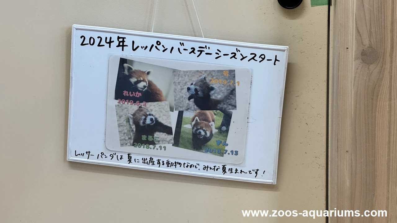レッサーパンダです。レッサーパンダは夏に生まれるようで、四頭いるレッサーパンダはみんな誕生日が近いみたいです。