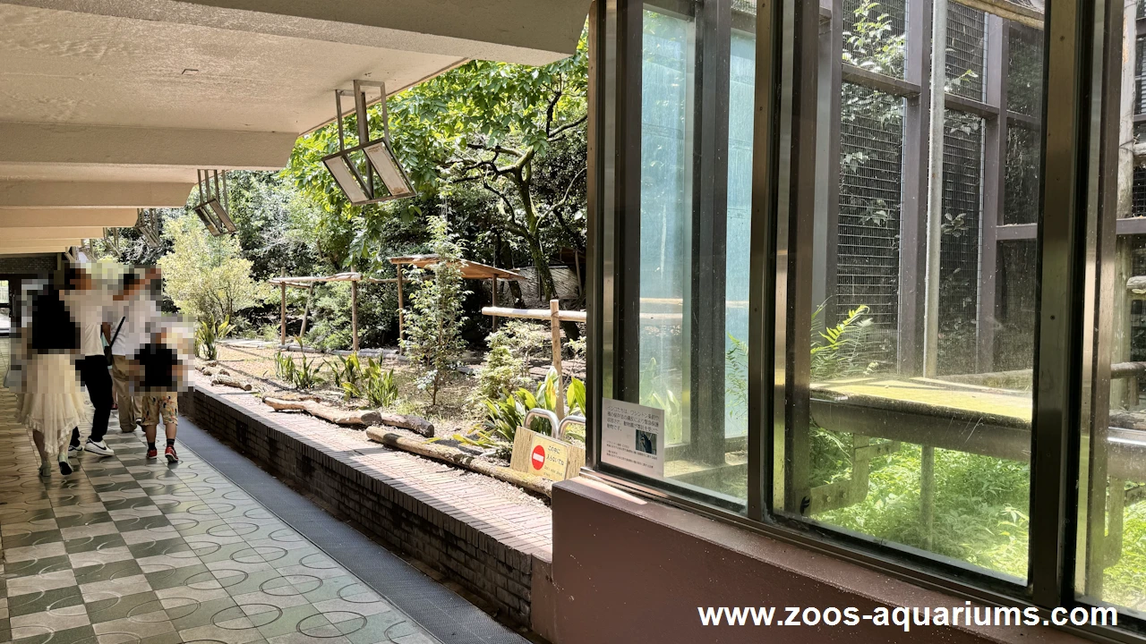 バードホールです。ペンギン舎と同じくしばらく鳥インフルエンザの影響で中に入ることができませんでした。久しぶりに中へ入ってみました。以前はまさしく鳥の楽園のような感じで色々な鳥がいたのですが、現在はクジャクなどが数羽いるだけになってしまっていてすこし寂しい感じです。
