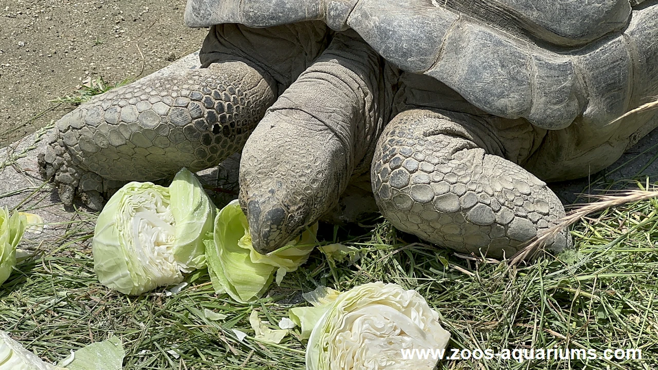 アルダブラゾウガメです。食事の時間でキャベツのようなものを食べていました。